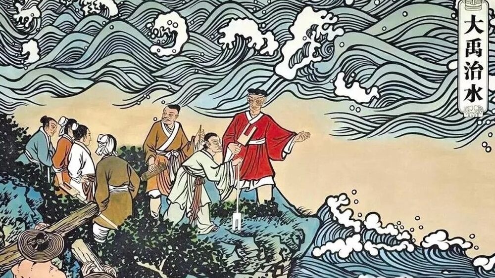 Malgré cela, il alla jusqu'au bout de sa mission en édifiant un système d'irrigation capable de drainer les eaux en crue vers la mer. Son titanesque ouvrage de drainage rendit la terre propice à la culture et relia les neuf provinces de Chine les unes aux autres. Impressionné par son travail et sa vertu, l'empereur Shun fit de lui son successeur.