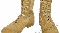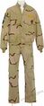 Costume fabriqué en série composé de : Desert camouflage coton ripstop bomber veste avec zip-up devant, panneaux Velcro sur les deux manches et un sur la poitrine, SGC patch et Air Force patch sur la manche droite, Terre patch sur la manche gauche, tous les patchs attachés avec Velcro, et manches et poignets en maille côtelée, production marquée "LANDRY" à l'intérieur de la poche poitrine gauche. Pantalon Desert camouflage en coton ripstop BDU, production marquée "LANDRY" à l'intérieur. Ceinture en cuir brun avec boucle en métal argenté, taille 38. Aucune information sur la taille n'est disponible sauf indication contraire. Sont inclus une paire de bottes en cuir beige avec dentelle et semelle en caoutchouc. taille 9.