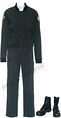 Confectionnée en ensemble d'EDR noires, la veste comporte un zip à l'avant avec deux poches, un patch drapeau américain sur la manche gauche et un patch Atlantis à droite. Pantalon doté d'un bouton à l'avant avec deux poches cargo et une étiquette à l'intérieur avec le nom "Dr. Weir". Inclus est un maillot de corps noir. Aucune taille disponible. Inclus sont une paire de bottes en cuir noir et nylon avec semelle en caoutchouc, taille 8.