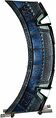 Les symboles de constellation sont des panneaux en plastique bleu et noir avec des trous non peints clairs montrant des symboles de constellation laissés clairs pour rétro-éclairage, les panneaux chevrons, Vs et constellation s'allument lorsque l'accessoire est branché, la fonctionnalité est vérifiée, sur le dos sont deux poteaux métalliques, la pièce entière se trouve sur une base en aluminium, attaché à la base est un cordon de mise à la terre électrique, mesures environ. 3,28m x 1,44m x 62,23cm. Le segment porte comprend une série de poteaux et de supports en aluminium utilisés pour assurer la stabilité lorsque le Gate est debout. La porte est également livré avec une planche à roulettes en bois personnalisée.