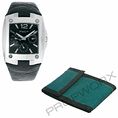 Montre bracelet en argent avec bracelet en cuir noir, la fonctionnalité n'est pas vérifiée, fabriqué par Kenneth Cole, les mesures env. 1.5in x 2.75in x 2.25in. Portefeuille en toile verte avec garniture noire et fermeture Velcro, mesure env. 5 po x 3,5 po x . 5 po.