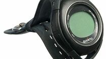 Montre de sport numérique en plastique noir avec bracelet en caoutchouc noir et boucle en métal, la fonctionnalité est non vérifiée, fabriqué par Suunto, mesures environ. 4,75 po x 2,5 po x 2 po.