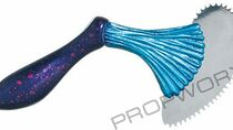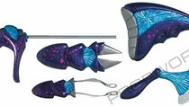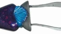 Production faite ensemble de 5 outils en résine avec des accents de métal et de verre. Chaque pièce est peinte avec un schéma de couleur violet et bleu métallique. Les articles varient de 10po de long à 4po de long.