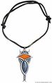 Pendentif en résine de production avec lentille orange et bouton gris, pendentif s'allume lorsque le bouton est poussé, la fonctionnalité n'est pas vérifiée, pend à un cordon en cuir noir, des mesures de pendentif environ. 4 po x 2 po x 5 po, le cordon mesure environ 15 po de longueur. Il est livré avec une batterie de rechange.