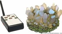 La production a fait la formation de cristal en caoutchouc clair, base est peinte en vert avec des reflets bleu métallique sur de grands cristaux, base a couvercle amovible et aimants intérieurs, lorsqu'ils sont allumés les cristaux s'allument et peuvent être éclairés, dimmed, et allumé et éteint avec un dispositif de commande radio inclus. Les cristaux mesurent environ 4 po de haut et 5,5 po de diamètre. La radiocommande mesure environ 4,5 po x 2,5 po x 1,75 po avec une antenne de 3,75 po.