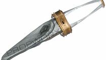 Arme utilisée par un membre d'équipage d'Aurora lors de la production de l'épisode "Aurora" de la saison 2 de Stargate Atlantis.