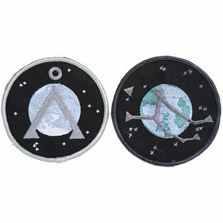Ensemble de deux écussons de bras symboles Stargate portés sur les uniformes du personnel SGC opérant dans les galaxies de la Voie Lactée et de Pégase, utilisés lors de la production de Stargate SG-1 et d'Atlantis.