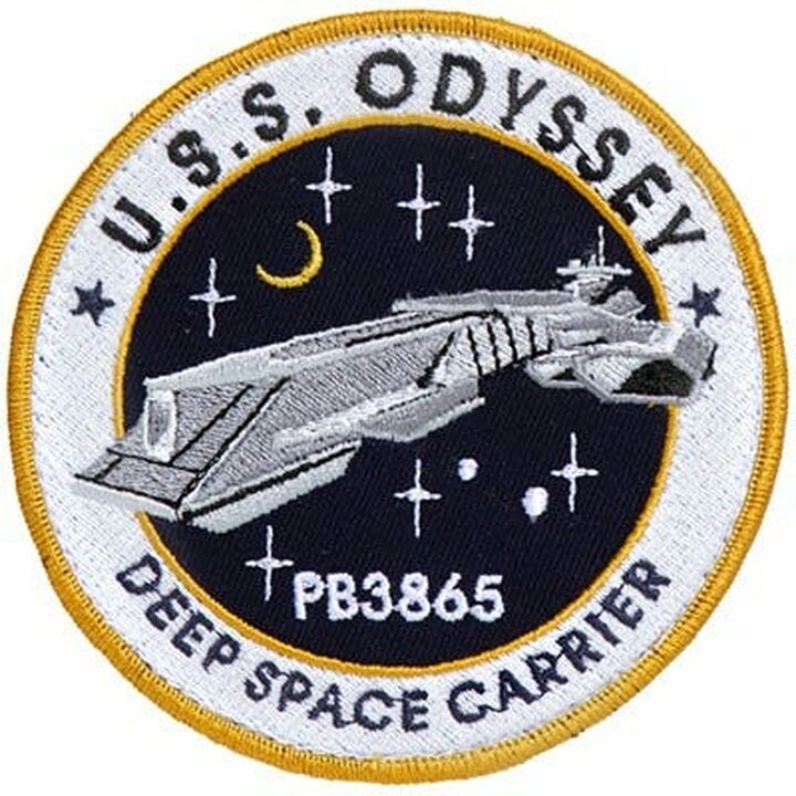Écusson de bras porté sur les uniformes du personnel stationné à bord du vaisseau spatial terrestre l'U.S.S. Odyssey.