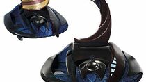 Inclus est : un autre bras violet qui représente le bras dans une configuration rétractée et se replie dans l'appareil sur la plaque à fentes, un couvercle en fibre de verre peint violet et bleu avec des reflets en bronze destinés à couvrir l'appareil dans sa configuration rétractée, une plaque à fentes en bois noir avec une plaque rectangulaire violette qui repose dans la fente, et un plat radar incurvé violet et or avec fente arrière destiné à combiner avec des parties du bras supplémentaire. Le corps principal de l'appareil mesure environ 24,5 po x 19 po x 10,75 po, le bras lumineux mesure environ 14,5 po x 10 po x 1,5 po, la parabole radar mesure environ. 13 po x 6,25 po x 5,5 po, le couvercle mesure environ 18 po x 10,5 po x 6,25 po.