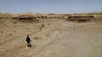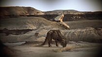 En 2010, suite à la fuite de Simeon par la porte des étoiles, le docteur Rush, accompagné du lieutenant Scott et du sergent Greer, se lança à la poursuite du fugitif à la surface d'une planète à la surface aride et désertique. Ainsi, après plusieurs heures de marche à travers le désert, le lieutenant Scott fit remarquer à Rush et Greer la découverte d'un animal herbivore semblable à un bison bipède situé à quelques centaines de mètres de leur position.