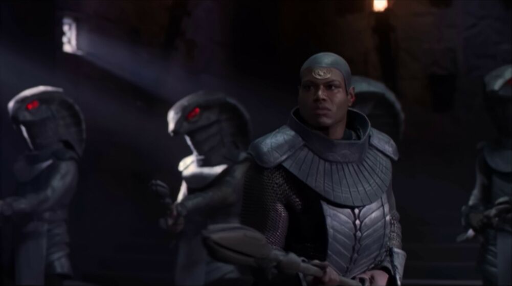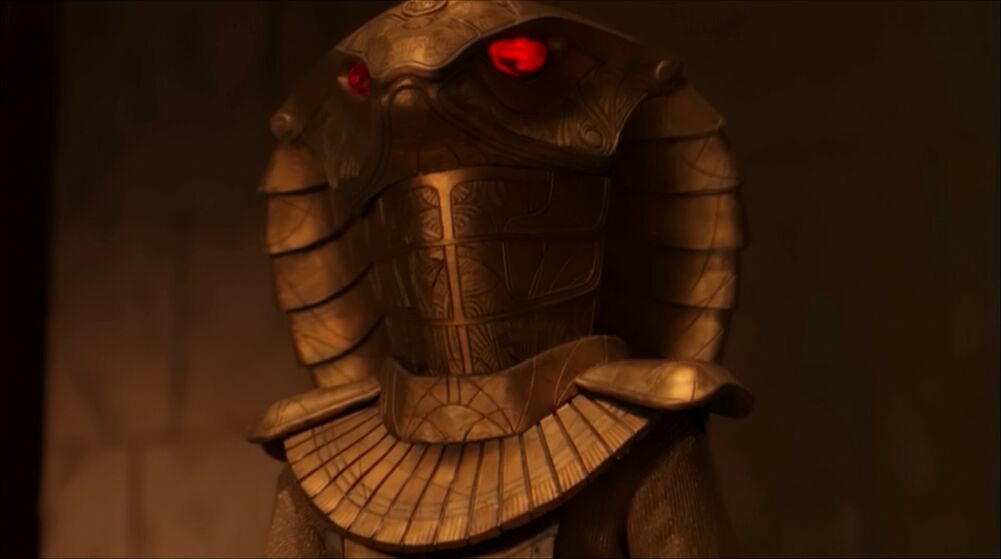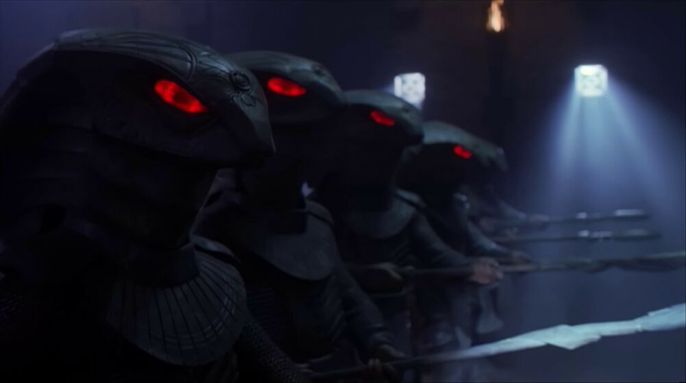 Lorsqu'un garde serpent activait son casque, les immenses yeux rouges situés sur ce dernier s'illuminaient d'une faible lueur, donnant un effet terrifiant à leur regard. Toutefois, au moment où un garde était tué au combat, le casque se désactivait de lui-même et les lumières au niveau des yeux s'éteignaient.