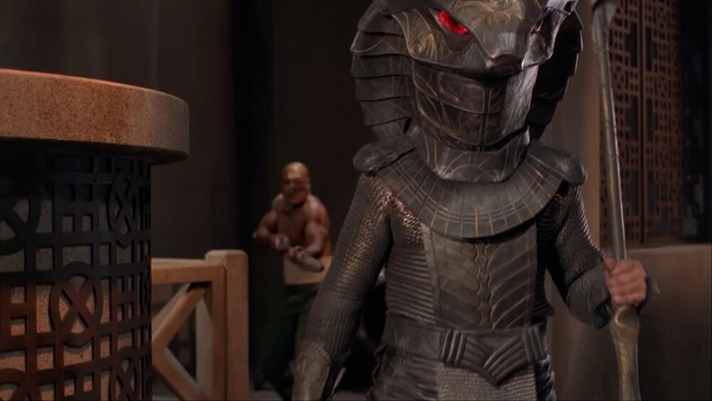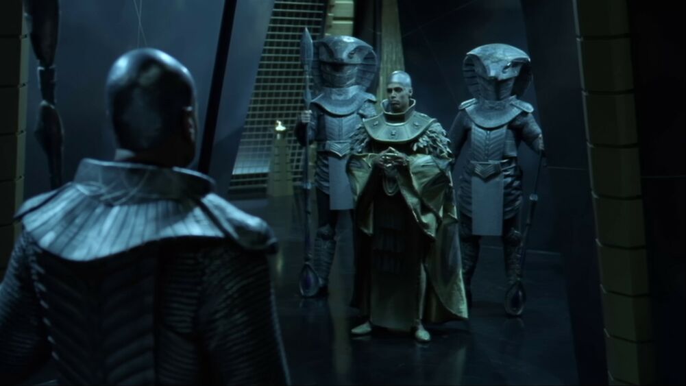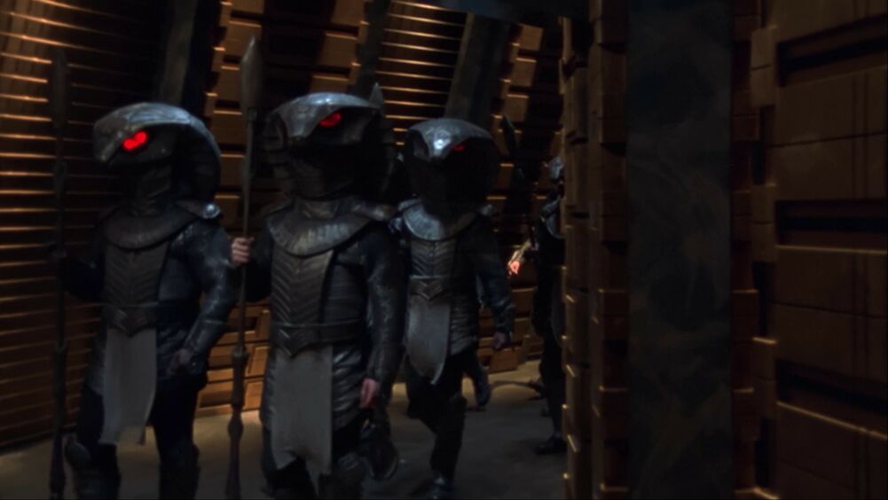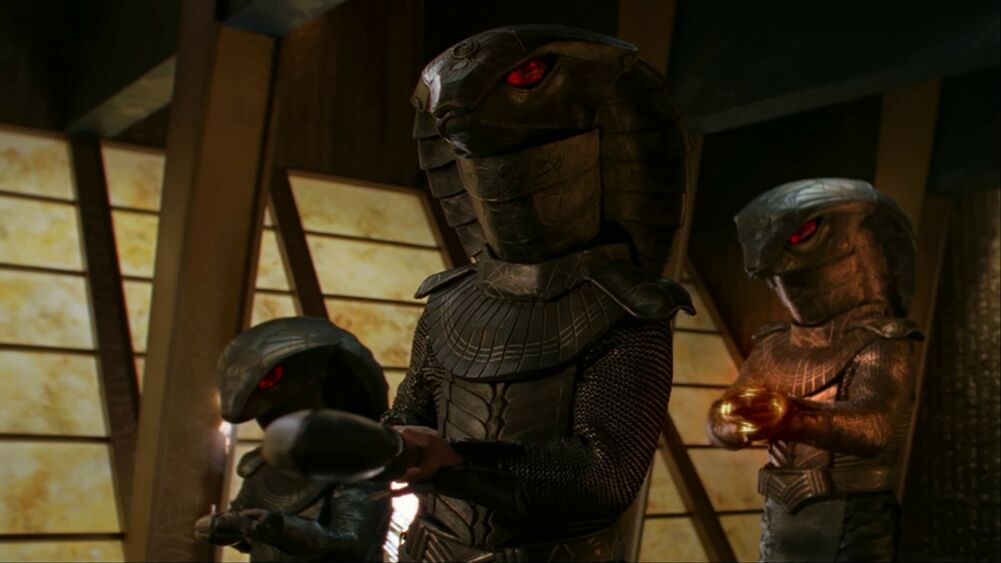 Lors de son réveil à l'infirmerie de la base, Teal'c informa le général Hammond et le docteur Fraiser que lui et les autres membres de SG-1 avaient été attaqués par des gardes serpents et des gardes Horus lors de leur mission d'exploration, et qu'il était rare de voir les deux gardes rapprochées combattre ensemble sous la même bannière. Au même moment, le colonel O'Neill découvrit qu'il était prisonnier d'une forteresse goa'uld et croisa plusieurs gardes serpents qui patrouillaient dans les couloirs. Ces Jaffas d'élite autrefois au service d'Apophis et d'Heru'ur étaient en réalité sous les ordres du Goa'uld Hathor, qui tentait de reconstituer ses forces armées et ainsi rebâtir son empire en attirant ces guerriers, provenant de plusieurs avant-postes ennemis, par la ruse.