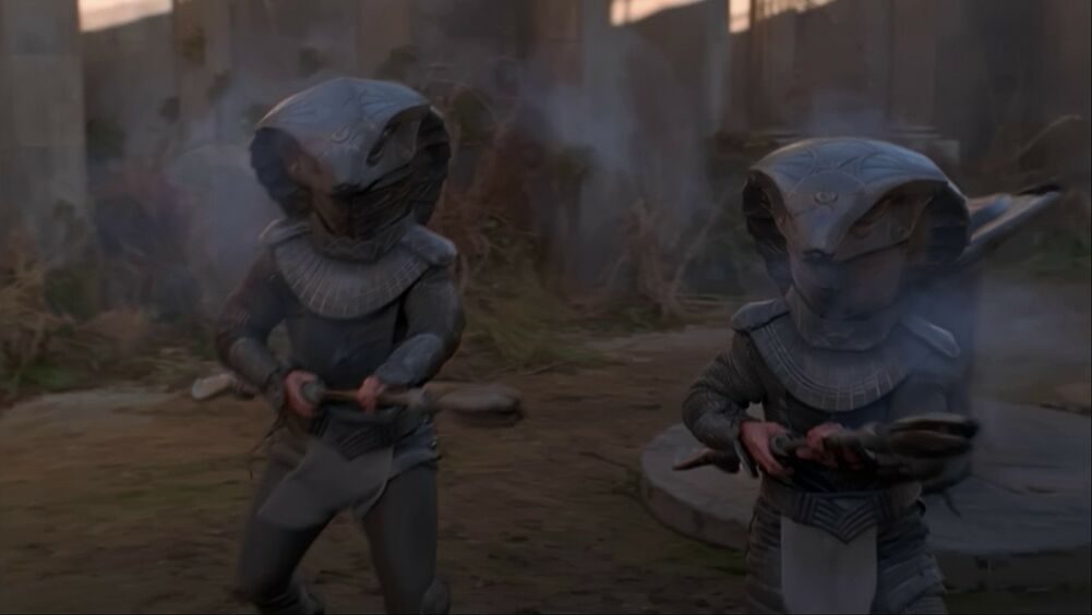 Plus tard, une patrouille jaffa menée par un garde serpent escorta Rya'c à travers la forêt et fut facilement maîtrisé par SG-1 et Bra'tac pour sauver le fils de Teal'c.