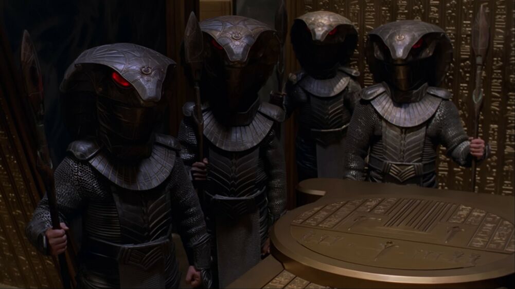 Véritable symbole du règne du Goa'uld Apophis, les gardes serpents étaient principalement reconnaissables grâce à leur imposant casque de couleur argentée ressemblant à une tête de cobra géant.