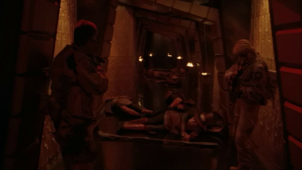 Il y a de nombreuses années, deux gardes serpents traversèrent la porte des étoiles terrestre située en Antarctique et enfouie à plusieurs dizaines de mètres sous la surface au cœur d'un immense glacier. Pris au piège dans une caverne glacée, ces Jaffas ne purent composer l'adresse d'une porte des étoiles et moururent très probablement d'hypothermie à proximité du DHD. Au fil des siècles, leurs corps furent entièrement pris dans la glace et découverts bien plus tard par le colonel O'Neill et le capitaine Carter lorsque ces derniers furent envoyés accidentellement en Antarctique par un dysfonctionnement de la porte des étoiles.
