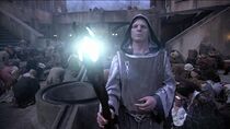À la nuit tombée, alors que Fannis retrouva les deux visiteurs venus de la Terre pour les emmener jusqu'à un terminal de communication subspatial, le prêcheur de Ver Ager fit irruption et tua le résistant anti-ori à l'aide de ses pouvoirs psychiques. Le docteur Jackson et Vala furent ensuite condamnés au bûcher par les habitants du village et conduits à l'Ara pour être brûlés vifs sous le regard du prêcheur. Bien que la connexion entre les pierres fut interrompue in extremis, Harris et Sallis Cicera, les hôtes des deux visiteurs terriens, furent tués par les flammes du bûcher. Suite à cette exécution publique, l'administrateur de Ver Ager fut transformé en prêcheur par les Oris en récompense de sa dévotion et le Doci ordonna la construction d'une flotte de vaisseaux-mères pour mener une croisade contre les peuples de la Voie lactée.