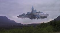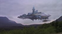 De couleur bleu-gris, cette ville surplombant une vallée densément boisée est composée d'une grande tour centrale, ainsi que plusieurs bâtiments et infrastructures aux formes arrondies.