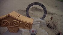 Toutefois, un immense monolithe en pierre d'environ huit mètres de haut et surmonté d'une figure dorée représentant le marteau de Thor se dresse devant la porte des étoiles de Cimméria. Ce dispositif technologiquement très avancé est capable d'identifier puis de téléporter les Goa'ulds, ou les Jaffas, au sein d'un labyrinthe souterrain. Néanmoins, il fut endommagé par l'équipe SG-1 puis remplacé par Thor après la tentative d'invasion de la planète par Heru'ur.