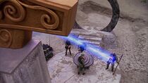 Bien que les croyances des Cimmériens interdisent de toucher le cristal marqué du marteau de Thor, les personnes qui se saisissent de la pierre sont instantanément téléportées dans une salle très sombre dans laquelle un hologramme du dieu Thor dans le plafond les accueille et les met au défi à travers une série d'épreuves pour acquérir son pouvoir.