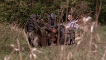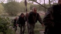 Au même moment, alors qu'ils parcoururent les couloirs sombres et lugubres du labyrinthe de Thor, le colonel O'Neill et Teal'c rencontrèrent un Goa'uld dans le corps d'un Unas qui les menaça de les dévorer vivant. Bien que le colonel O'Neill lui infligea une rafale de MP5, celui-ci parvint à survivre à ses blessures à l'aide des pouvoirs de guérison du symbiote et les suivit jusqu'à la salle du marteau de Thor. Néanmoins, entre-temps, Kendra emmena le capitaine Carter et le docteur Jackson jusqu'à l'entrée du tunnel souterrain menant au labyrinthe. Le colonel O'Neill et Teal'c affrontèrent alors Unas et éliminèrent le Goa'uld grâce au marteau de Thor. Toutefois, après le combat, O'Neill ordonna au docteur Jackson d'utiliser la lance goa'uld de Teal'c pour détruire le marteau de Thor et permettre à leur ami jaffa de sortir du labyrinthe.