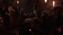 Alors qu'un des guerriers cimmérien appelé Olaf accepta de conduire le colonel O'Neill et Teal'c jusqu'au chantier de construction goa'uld, Gairwyn apprit l'existence de la grotte de l'Oeil de pierre au capitaine et au docteur Jackson, un lieu légendaire dans lequel Thor conserverait l'ensemble de ses pouvoirs afin de les aider à défendre leur monde en cas de besoin. Entre-temps, O'Neill et Teal'c découvrirent que Heru'ur était responsable de l'invasion de Cimméria et que le chantier était protégé par de nombreux Jaffas, commandés par des gardes Horus. Toutefois, bien que Olaf fut capturé par des Jaffas et interrogé par Heru'ur en personne sur la présence des personnes ayant franchies la porte des étoiles, le colonel O'Neill et Teal'c purent éliminer les gardes à l'aide de leurs armes et sauvèrent le Cimmérien sous les yeux du seigneur goa'uld.