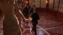 Après avoir conduit les membres de SG-1 à l'intérieur du temple dans lequel se trouvait le dispositif extraterrestre, les Madroniens apprirent à ces derniers qu'un groupe d'hommes portant les mêmes uniformes que les équipes d'exploration terriennes avait dérobé le contrôleur climatique avant de s'enfuir par la porte des étoiles. Bien que Roham et sa nièce supplièrent SG-1 de leur rendre l'appareil afin d'éviter une catastrophe planétaire, les membres de l'équipe parvinrent à convaincre les Madroniens de les laisser rentrer sur Terre pour les aider à retrouver leur ravisseur, ainsi que le dispositif de contrôle climatique.
