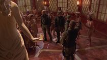 Une grande allée bordée de chaque côté par des colonnes surmontées de chapiteaux part de la porte des étoiles et mène directement à l'intérieur du temple de la clé de voûte. Ce temple est gardé en permanence par des soldats madroniens armés de lances ou d'arcs et de flèches.