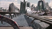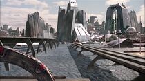 Une très grande cité fantôme à l'architecture moderne avec des grands immeubles se dressent à plusieurs kilomètres au-delà d'une étendue d'eau. Celle-ci est traversée par deux ponts suspendus surmontés de monorails, suggérant l'existence de transports en commun.