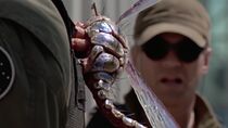 Néanmoins, alors que le colonel O'Neill tenta d'utiliser son arme de poing pour tuer l'insecte, Teal'c fut piqué dans le dos par ce dernier et s'effondra de douleur. O'Neill et Carter lui portèrent aussitôt secours, mais un essaim de plusieurs centaines d'insectes apparut au-dessus d'un bâtiment et se dirigea vers leur position. Le docteur Jackson composa alors au plus vite l'adresse de la Terre, et l'équipe parvint à s'enfuir in extremis par la porte des étoiles avant d'être rattrapée par ces étranges créatures.