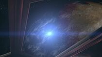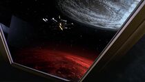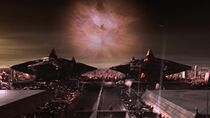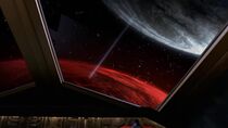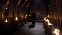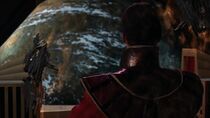 De plus, d'immenses fenêtres placées tout autour du palais offrent une ouverture sur les pistes d'atterrissage sur lesquelles sont posés plusieurs vaisseaux de classe Ha'tak.