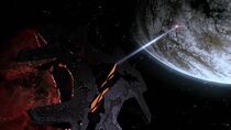 Quelque temps plus tard, en 2001, lorsque Apophis et sa garde personnelle parvinrent à prendre le contrôle du vaisseau-mère de Cronos contrôlé par les membres de l'équipe SG-1, ceux-ci entrèrent les coordonnées de la planète Delmak avant de mettre le cap sur ce monde en hyperespace. Toutefois, étant situé à plus de 4 millions d'années-lumière dans une autre galaxie, le vaisseau aurait mis 125 ans pour arriver à destination à vitesse maximale en hyperpropulsion. C'est alors que les Réplicateurs infectèrent le vaisseau et réussirent à infiltrer les systèmes informatiques du vaisseau, ainsi que sa base de données.
