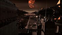 On peut également apercevoir une immense ville au-delà des pistes d'atterrissage des vaisseaux de classe Ha'tak qui semble s'étendre sur plusieurs kilomètres de long. Des planeurs de la mort survolent constamment la surface de Delmak, assurant la sécurité au sein de la cité et des chantiers de construction depuis les airs.