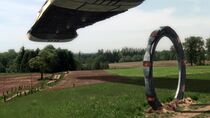 La porte des étoiles de Volia, autrefois enterrée avant l'arrivée des Aschens, est située au milieu des champs céréaliers au bord d'un chemin boueux. Celle-ci a la capacité de s'incliner à l'horizontale pour permettre aux moissonneuses aschens d'envoyer directement leur récolte sur leur planète mère. Toutefois, elle ne semble pas être équipée de DHD, celui-ci n'ayant jamais été retrouvé par les Aschens.