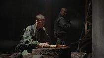 Pendant ce temps, Daniel et Teal'c interrogèrent Keel, un agriculteur volien sur la fiabilité des Aschens et celui-ci leur révéla qu'il fut lui-même élevé par une famille aschen. Toutefois, il leur signala une arroche dans son champ qu'il ne parvenait pas à déterrer et Daniel proposa son aide avec Teal'c. Alors qu'ils tentèrent de la dégager, ils découvrirent l'entrée d'une galerie souterraine menant aux ruines de l'ancienne cité volienne. Daniel trouva de vieux journaux dans une sorte d'édifice public et parvint à déchiffrer les textes écrits en ancien celte. Il fut alors surpris d'apprendre l'existence d'une ancienne civilisation volienne bien plus évoluée que celle existante actuellement à la surface avant l'arrivée des Aschens. Il comprit que les Aschens avaient apporté quelque chose sur ce monde et que la population volienne se réduisit considérablement au point d'être quasiment effacée.