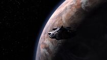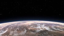 À noter que, vue depuis l'espace, cette planète ne semblait pas posséder de grands océans, mais abritait un unique continent désertique.