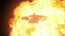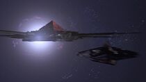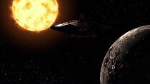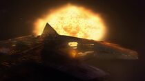 Après avoir évacué la base de Vorash et embarqué la porte des étoiles à bord du vaisseau-mère goa'uld, les membres de l'équipe SG-1 et Jacob Carter mirent le cap vers le soleil de Vorash une heure avant l'arrivée de la flotte d'Apophis. Une fois le vaisseau arrivé près de l'étoile, le major Carter composa les coordonnées de P3W-451 et un vortex fut établi avec le trou noir. Le major désactiva alors les pinces d'amarrage et largua la porte des étoiles dans l'espace. Cependant, au moment où Jacob s'apprêtait à passer en hyperespace, un Al'kesh camouflé fit irruption et bombarda le vaisseau Ha'tak de l'équipe SG-1.