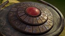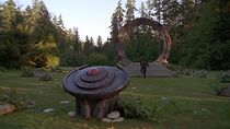 La porte des étoiles locale est installée au milieu d'une petite clairière parsemée de rochers et entourée d'une forêt de conifères.