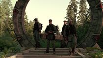 Quelques instants plus tard, O'Neill traversa la porte des étoiles et déposa l'appareil asgard sous une pierre au pied du DHD. Cependant, alors qu'il s'apprêtait à repartir, la porte s'activa de l'extérieur et il fut contraint de se cacher derrière un rocher à la lisière de la forêt. C'est alors que les membres de l'équipe SG-1, commandés par le colonel Makepeace, débarquèrent sur la planète et commencèrent à explorer les alentours de la porte des étoiles dans le but de déterminer si ce monde possédait un filon de naquadah pouvant être exploité.