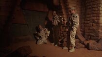 Arrivé à la surface de ce monde aride et désertique, le docteur Britski réussit à déchiffrer le code d'ouverture de la ziggourat, permettant à l'équipe d'entrer au sein de l'ancien temple mésopotamien. Néanmoins, une fois à l'intérieur, les membres de l'équipe se retrouvèrent pris au piège en déclenchant un mécanisme de fermeture près du sarcophage du Goa'uld Marduk. Cependant, lorsqu'ils décidèrent d'ouvrir ce dernier, ils libérèrent involontairement la créature carnivore enfermée à l'intérieur qui blessa mortellement le major Kirensky. Bien qu'ayant découvert l'Oeil de Tiamat dans la tombe, deux autres membres de l'équipe furent tués lors d'un éboulement d'un des couloirs de la pyramide. Alors qu'il fut le dernier survivant, le docteur Britski se résigna à mettre fin à ses jours en avalant une capsule de cyanure.