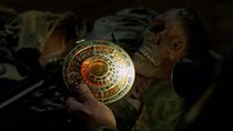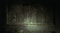 Un texte en écriture cunéiforme gravé sur la porte d'entrée raconte le mythe de la création du monde babylonien. Le texte est placé dans le désordre et seul un prêtre de Marduk ou une personne capable de déchiffrer l'écriture cunéiforme peut repérer les morceaux du texte qui ont été déplacés et remettre le texte dans l'ordre afin d'enclencher le mécanisme d'ouverture de la porte.