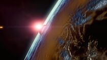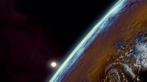 À noter que vue depuis l'espace, la planète Tollana semble posséder un immense continent verdoyant, ainsi que de grandes étendues d'eau.