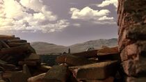La porte des étoiles locale est située au milieu des ruines d'une vaste ville et entourée de hautes collines escarpées dénudées de toute végétation. L'ancienne cité semble s'étendre plusieurs kilomètres aux alentours de la porte des étoiles et comporte une grande esplanade surélevée surmonté d'un temple abritant l'arme.