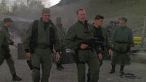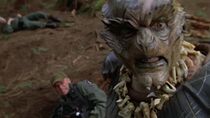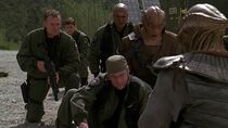 Peu de temps après, plusieurs militaires terriens parcoururent la forêt à la recherche des Unas primitifs et finirent par engager le combat avec ces derniers. Toutefois, alors que plusieurs militaires furent blessés durant les combats, dont le colonel O'Neill, le docteur Jackson parvint à communiquer avec l'un des Unas qui ordonna à ses congénères de se replier dans la forêt. Furieux de ces attaques, le colonel Edwards souhaita poursuivre les Unas pour les éliminer, mais le colonel O'Neill refusa et lui suggéra de rentrer à la base afin de prévenir le général Hammond de la situation. Ainsi, l'ensemble du personnel terrien évacua la planète et retourna au SGC par la porte des étoiles.