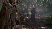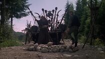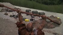 Quelques minutes plus tard, alors que le major Lorne conduisit le colonel O'Neill et Teal'c sur le lieu de la disparition du lieutenant Ritter, le docteur Jackson découvrit d'anciens artefacts retrouvés près du campement par SG-11 et en déduisit que certains outils, dont un joug, devaient être utilisés par des Unas. Néanmoins, au moment où le docteur Jackson tenta de convaincre le colonel Edwards de renoncer à l'exploitation minière, le major Lorne et Teal'c retrouvèrent le corps du lieutenant Ritter accroché à un autel rituel construit par les Unas près de l'entrée d'une ancienne mine de naquadah. Toutefois, malgré cette macabre découverte, le colonel Edwards refusa catégoriquement d'évacuer la planète et ordonna à ses hommes de sécuriser la zone située autour du campement.