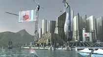 L'une des plus grandes métropoles de la planète fut construite au bord d'une étendue d'eau entourée de grandes collines verdoyantes. Cette cité composée de gratte-ciel à l'architecture futuriste semble être peuplée de plusieurs millions d'Hebridans et est constamment survolée par un grand nombre de vaisseaux spatiaux, ou des véhicules utilisant une technologie anti-gravitationnelle.