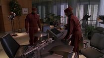Entre-temps, le colonel O'Neill et le docteur Jackson contactèrent Warrick et le major Carter pour les avertir qu'ils étaient parvenus à un accord avec les dirigeants d'Hebridan en aidant ces derniers à rapporter une porte des étoiles à la surface de ce monde en échange d'un réacteur ionique. Alors que le major Carter souhaita poursuivre la course pour aider Warrick à remporter la grande épreuve de Kon Garat, Eamon et Teal'c parvinrent à infiltrer l'immeuble de Tech con et à se rendre dans le bureau de Del Tynan. Néanmoins, au moment où Eamon découvrit que ce dernier avait saboté l'ensemble des vaisseaux de la course spatial, hormis celui de Muirios, Tynan fit irruption en compagnie de deux gardes armés et les retinrent prisonniers dans son bureau pour les empêcher de divulguer sa trahison avant la fin de l'épreuve.