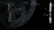 Placée en orbite de la planète Hebridan, cette ligne de départ et d'arrivée de la grande course annuelle de Kon Garat est composée de deux immenses structures spatiales capables d'émettre un mince rayon énergétique de couleur bleu, formant une sorte de paroi immatériel à travers l'espace.