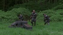 Cependant, peu de temps après, une patrouille jaffa repéra la présence du major Carter et du docteur Felger près de la porte des étoiles et commença à les attaquer. Carter tenta alors de les repousser à l'aide de son fusil d'assaut pendant que Felger continua tant bien que mal ses manipulations informatiques pour éliminer le programme de Ba'al. Alors que tout semblait perdu pour la petite équipe, un Al'kesh contrôlé par le colonel O'Neill et Teal'c vint à leur secours. Ces derniers pilonnèrent les Jaffas au service de Ba'al et parvinrent à les repousser. Les Jaffas ennemis finirent par battre en retraite et quittèrent la zone de la porte des étoiles.