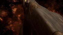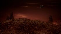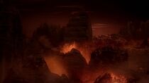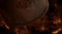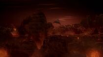 Quelque temps plus tard, le vaisseau cargo sortit de l'hyperespace près de la planète et les membres de l'équipe terrienne furent stupéfaits de découvrir un monde désolé couvert de volcans et de rivières de lave en fusion orbitant autour d'une géante rouge. Alors que l'équipe s'interrogea sur la direction à prendre, le colonel O'Neill prit les commandes du vaisseau cargo et détecta une irrégularité géologique semblable à une bulle à la surface de la planète, vestige d'un ancien champ de force.