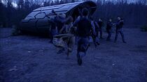 Toutefois, après avoir découvert l'existence des Jumpers et de leur capacité d'occultation, le major Sheppard parvint à convaincre le docteur Weir de le laisser mener une opération de secours afin de libérer le colonel Sumner et ses hommes sur la planète contrôlée par les Wraiths. C'est alors qu'une équipe de militaires composée notamment du major Sheppard et du lieutenant Ford traversa la porte des étoiles à bord d'un Jumper quelques minutes plus tard et arriva en orbite de ce monde. Alors que l'officier terrien s'interrogea sur la direction à prendre, une carte s'afficha sur l'écran du vaisseau lantien et celui-ci se posa à quelques kilomètres du vaisseau-ruche partiellement recouvert par la végétation locale.